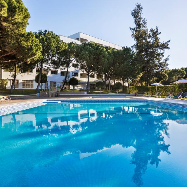 Eenmaal aangekomen bij het hotel kom je meteen tot rust. Neem plaats bij Patio Bistro voor een heerlijk drankje en snack. Buiten vind je vier zwembaden: twee voor volwassenen en twee voor de kinderen. Op de fijne ligbedden is het heerlijk vertoeven in de zon. Het hotel ligt op een rustige locatie waar je heerlijk kunt wandelen en fietsen. Voor de kinderen worden verschillende activiteiten georganiseerd en er rijdt een gratis busje naar het strand en de stad Vilamoura.