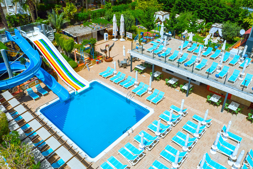 Club Big Blue Suite Hotel ligt in de rustige wijk Oba en aan de rand van het centrum van Alanya. Het privéstrand vind je op loopafstand net als vele winkels, restaurants en bars. Het centrum van Oba bestaat voornamelijk uit laagbouw met een gezellig centrum met mooi geplaveide winkelstraten vol leuke winkeltjes en eetgelegenheden. Het familiehotel Club Big Blue Suite Hotel beschikt over twee zwembaden, waaronder een zwembad met glijbanen. In het buffetrestaurant en het à-la-carterestaurant kun je genieten van heerlijke maaltijden. Sport en ontspanning mogen tijdens je vakantie natuurlijk ook niet ontbreken. Zo kun je bijvoorbeeld een potje tafeltennissen of beachvolleyballen en in de sauna of tijdens een massage kun je heerlijk ontspannen. De kids zullen zich hier zeker ook vermaken. Zo is er een kinderbad, een miniclub en een speeltuin. Kortom, dit familiecomplex is ideaal voor jong en oud! Tijdens je verblijf kun je ervoor kiezen om het excursiepakket met drie excursies te boeken. Met dit pakket ga je op jeeptour door de hellingen van de Taurusbergen en maak je kennis met het authentieke nomadenleven. Daarnaast maak je een boottocht over de rivier de Manavgat en kun je volledig tot rust komen in de hamam.