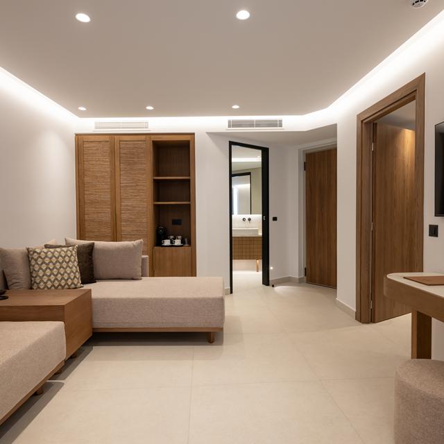 Galaxy Suites Boutique Resort is een vijfsterrenadres dat Grieks vakmanschap combineert met moderne elegantie. De luxe suites zijn ontworpen in warme aardetinten en natuurlijke materialen, geïnspireerd door de Egeïsche architectuur. Je kunt rekenen op een bijzonder aanbod: meerdere zwembaden met ligbedden en parasols, een 24-uurs gym, en het gastronomische Thea Restaurant met uitzicht op zee waar je kunt genieten van heerlijke gerechten. De ligging in het sfeervolle Koutouloufari, vlak bij het bruisende Hersonissos, maakt dit resort perfect voor wie rust zoekt zonder iets te hoeven missen.