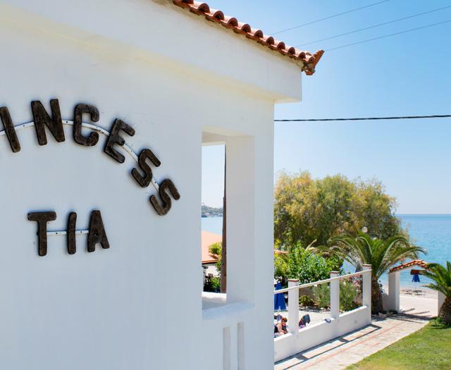 Aan de rand van het rustige dorpje Balos ontdek ik een wit gebouw dat schittert in de zon. Princess Tia ligt direct aan zee, omringd door het geluid van de golven en een briesje dat de palmbomen laat ritselen. Bij de kleine strandbar ontmoet ik de eigenaren, Tia en Yiannis, die me met een warme glimlach verwelkomen. "Wie hier komt als vreemde, vertrekt als vriend," zegt Tia. Ik voel me meteen thuis!
