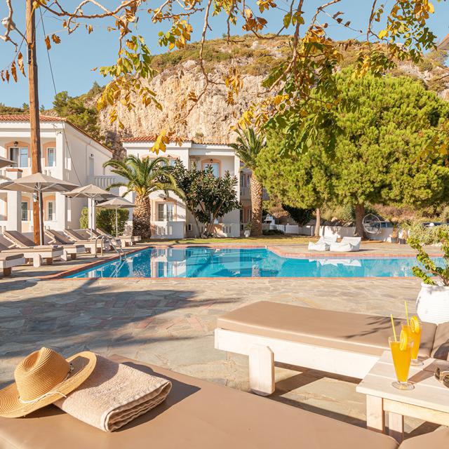 De studio's zijn comfortabel en sfeervol ingericht, met een ontspannen eilandgevoel. In de tuin lonkt het zwembad voor een frisse duik, terwijl het strand op een steenworp afstand ligt. Hier geniet je in alle rust van de turkooise zee en 's avonds proef je de lokale sfeer in één van de paar gezellige restaurantjes in de buurt.